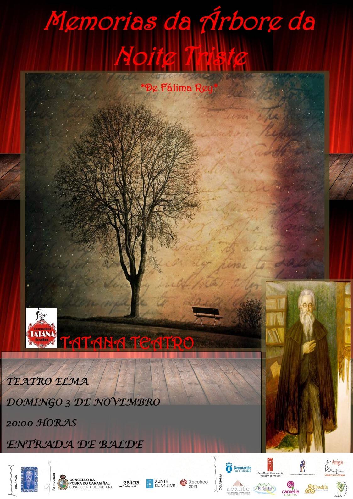 Neste domingo, 3 de novembro de 2019, ás 20 h no teatro Elma, a compañía teatral Tatana representaranos Memorias da árbore da noite triste (obra escrita e mais dirixida pola actriz e directora teatral Fátima Rey) no seo das XXI Xornadas de Homenaxe a Valle-Inclán que se están a realizar na Pobra do Caramiñal nestas semanas.