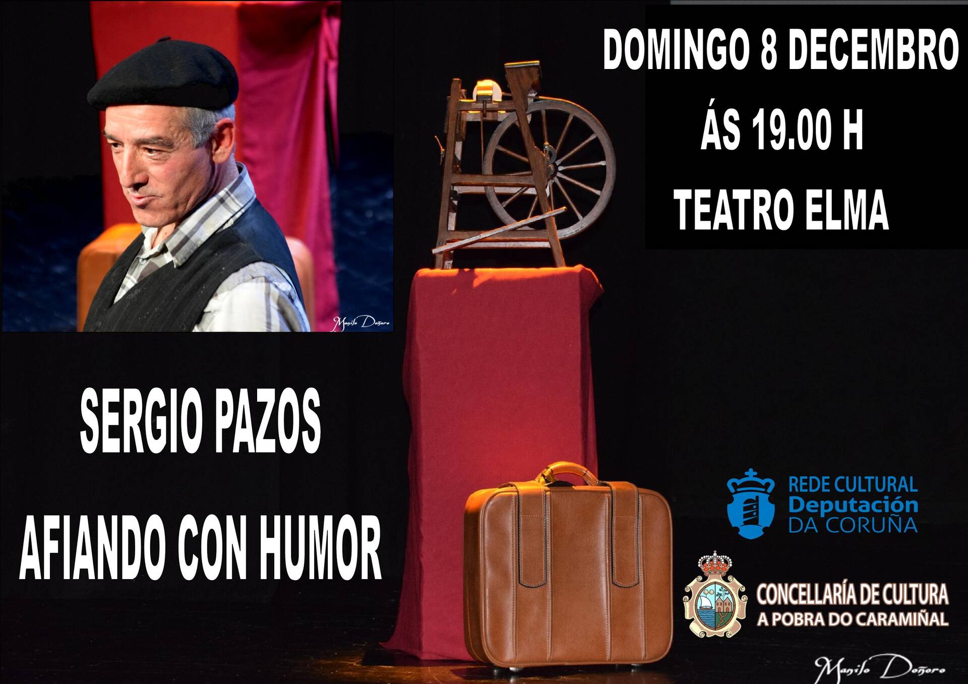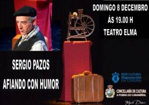 Neste 8 de decembro de 2019, ás 19 h do serán, Sergio Pazos presenta Afiando con humor.