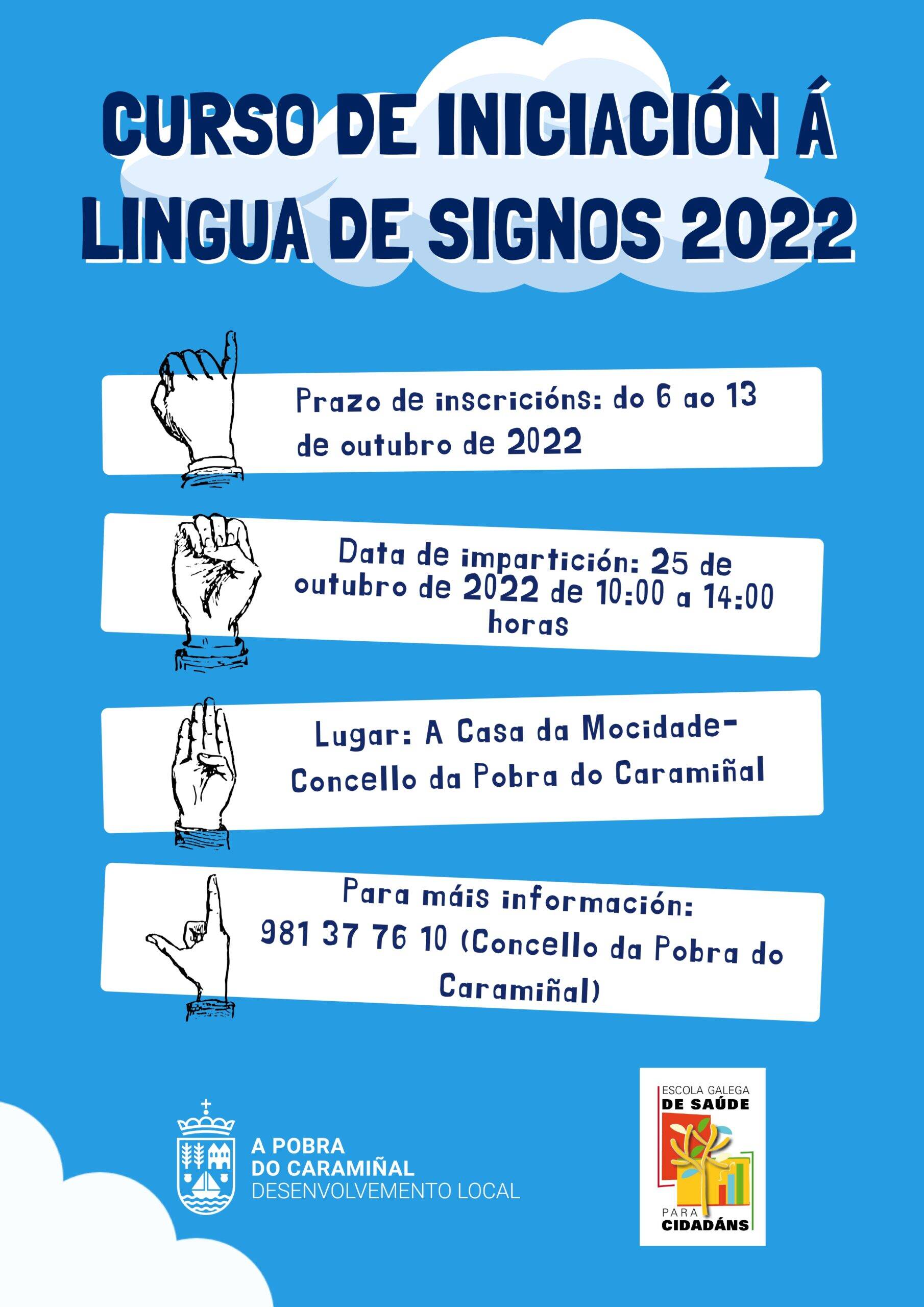 Ante a boa acollida que tivo o curso de iniciación á lingua de signos no pasado ano, a Concellaría do Desenvolvemento Local da Pobra do Caramiñal, en colaboración coa Escola Galega de Saúde para Cidadáns, promove unha nova edición para o actual exercicio.