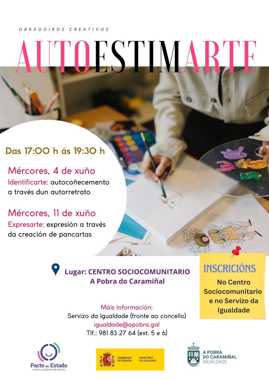 A área de Igualdade do Concello da Pobra do Caramiñal pon en marcha o programa ‘Autoestimarte’, unha proposta destinada a mulleres que busca promover a autoestima, o fortalecemento persoal e o autocoñecemento mediante a creatividade e a expresión artística.