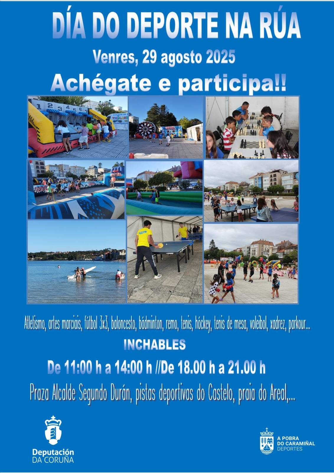 O deporte será o gran protagonista nas rúas da Pobra do Caramiñal este venres, 29 de agosto. Así o anunciaron o concelleiro de Deportes, Eloy Sobrido, e a coordinadora da área, Ana Romero, durante a presentación dunha nova edición do Día do Deporte na Rúa.