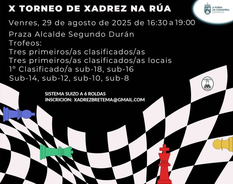 Ademais, no marco desta programación terá lugar o X Torneo de Xadrez na Rúa, que se celebrará de 16.30 a 19.00 horas na praza Alcalde Segundo Durán. O torneo disputarase baixo o sistema suízo a seis roldas, e as inscricións poderán realizarse a través do correo electrónico xadrezbretema@gmail.com