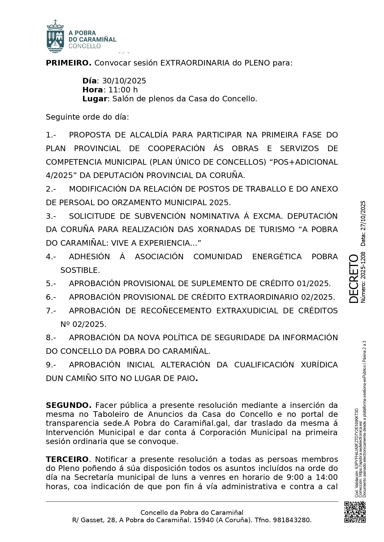 • Pleno extraordinario da Pobra do Caramiñal (30/10/2025)