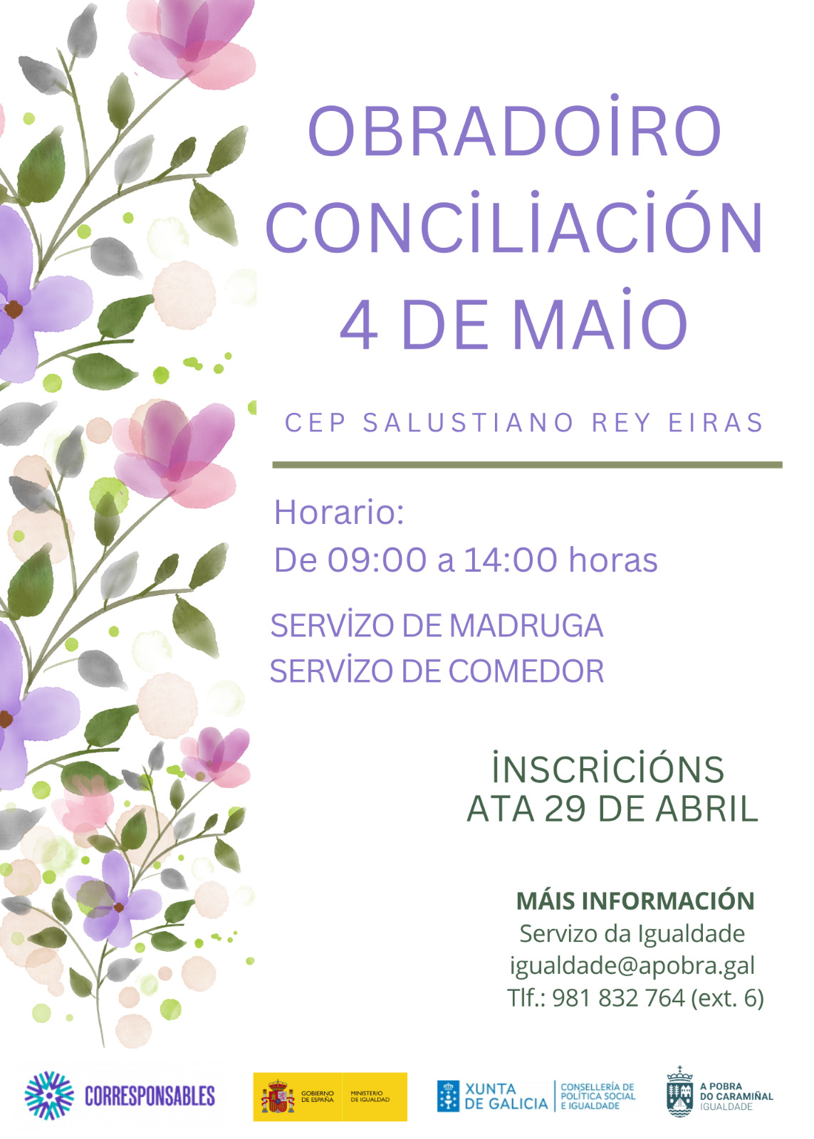 O Concello da Pobra do Caramiñal pon en marcha un novo obradoiro de conciliación para o vindeiro 4 de maio no CEP Salustiano Rey Eiras, en horario de 09.00 a 14.00 horas.