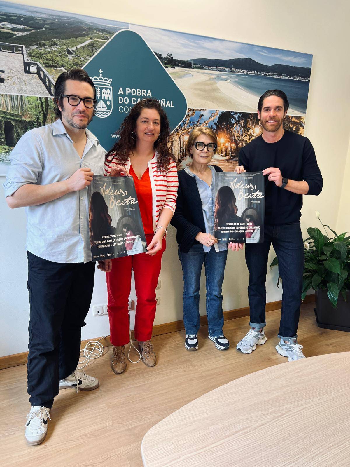 Como parte del Maio das Letras, A Pobra acogerá, esta semana, el estreno del cortometraje Adeus, Berta. Será el viernes, 23 de mayo, a las 19.30 horas en el Cine Elma e incluirá, no solo la propia proyección, sino también una charla-coloquio con el director, Fernando Tato, y con miembros del equipo de producción, cóctel, DJ y photocall. Así lo confirmó, esta mañana, la concejala de Cultura, Patricia Lojo, durante la presentación de la actividad que se convierte “nunha oportunidade única para gozar dunha obra ambientada no noso municipio”, explicó la edil. Lojo animó a la ciudadanía a sumarse a la actividad y a disfrutar de una pieza “na que aparecerán lugares moi recoñecibles para calquera veciño ou veciña”. La responsable de Cultura estuvo acompañada por el director, Fernando Tato, por el productor, Adrián Castiñeiras, y por la técnica municipal del área.