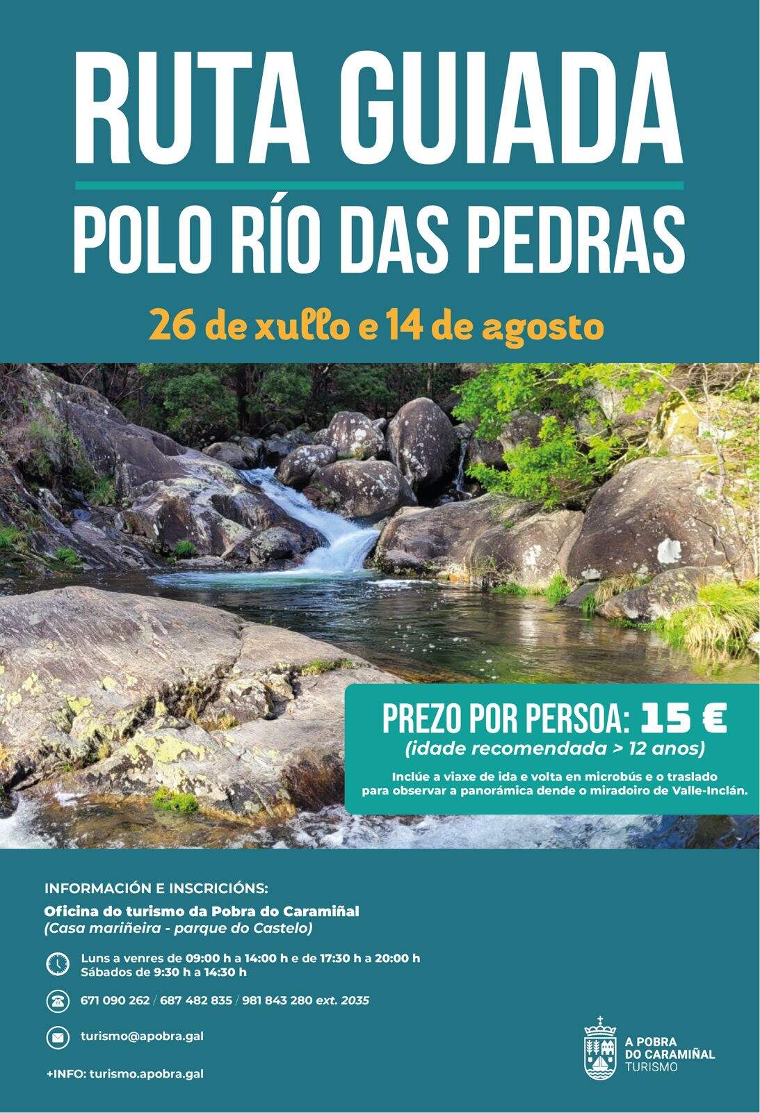 La riqueza natural y cultural del río das Pedras hacen de este espacio uno de los mayores reclamos turísticos de A Pobra do Caramiñal. El Concello buscará poner en valor este entorno con dos rutas turísticas que correrán a cargo del geógrafo y guía oficial de Turismo de Galicia, Joaquín Rubal. Las actividades están encuadradas dentro del programa estival de la Concellería de Turismo, y se llevarán a cabo este sábado, 26 de julio, y el jueves, 14 de agosto.