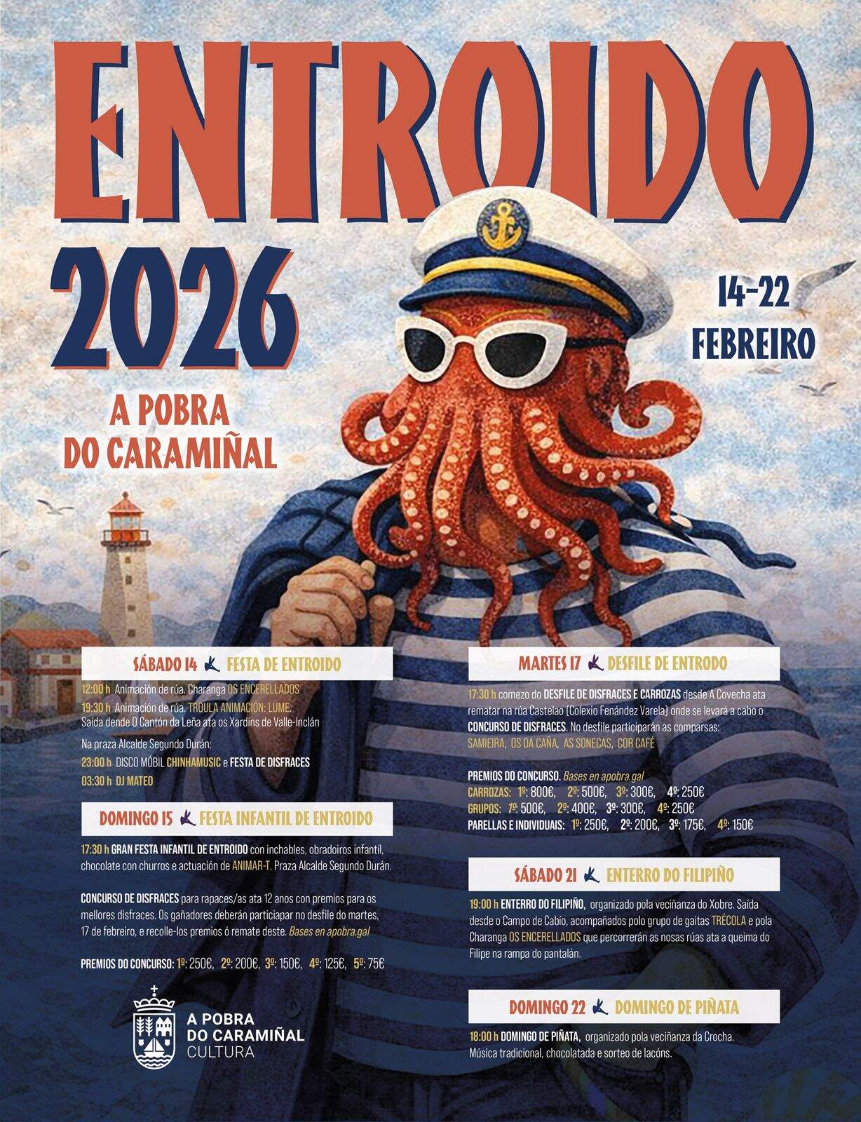 A Pobra do Caramiñal se prepara para vivir con intensidad el Carnaval 2026 con actividades festivas, animación en la calle, concursos de disfraces, eventos infantiles y mucho más.