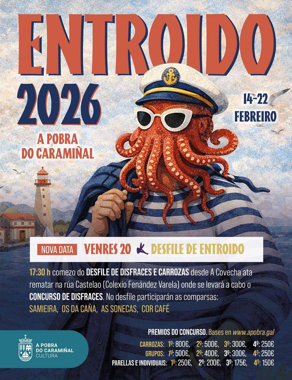 Las malas previsiones meteorológicas obligaron al Concello de A Pobra a aplazar el desfile de Entroido previsto para le martes 17 de febrero. Finalmente, la data de celebración será el viernes 20 de febrero.